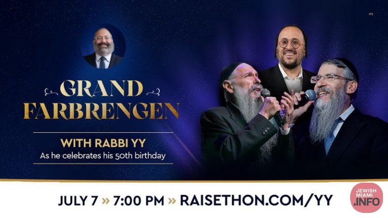 A live farbrengen and musical event celebrating Rabbi YY Jacobson’s 50th Birthday will take place live Thursday evening, the 7th of July at 7:00 PM. Watch it Live Here on JewishMiami.info