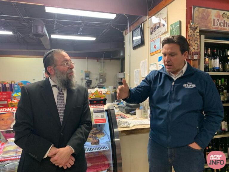 Florida Governor and Presidential Candidate Ron DeSantis makes a stop at Maccabees Kosher Deli in Des Moines, IA for a Pastrami on rye.