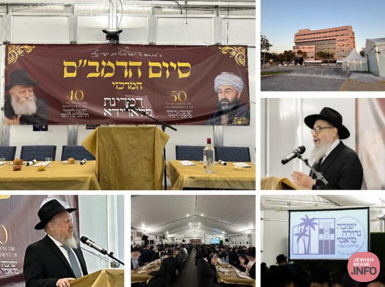 On Thursday evening 18 Adar, the Shluchim of Yeshiva Gedolah of Miami hosted hundreds of Bochurim, Shluchim and Anash in a grand celebration of Shnas Hayovel to the Yeshiva and 40 years to the Takono of learning Rambam.