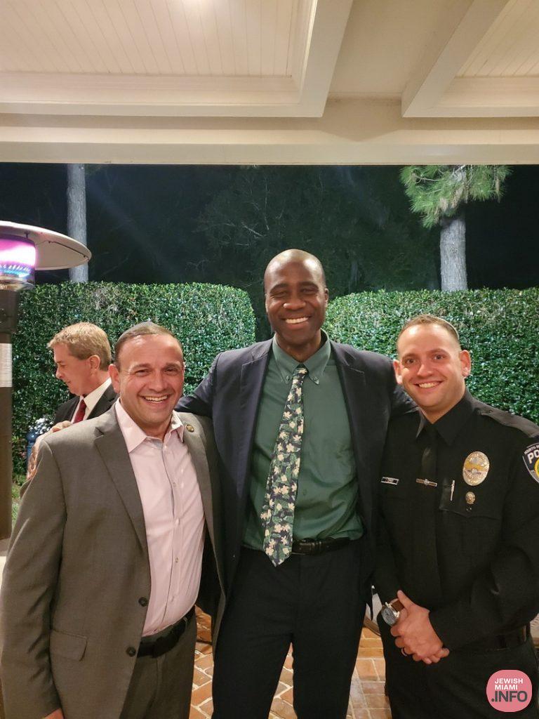 “I’ve never lost my contacts with the Jewish community,” he says, adding that “it honors me, especially recently, that I got to tie that into law enforcement. Because when law enforcement is going through a very difficult time, you see it New York, you see it here in North Miami Beach, and we’re under attack and people don’t like the police, I’m so proud to be able to see that the Jewish community always is the number-one community that comes forward and gives us coffee, gives us doughnuts, gives us cakes, gives us rugelach, gives us whatever it is, and just the heartfelt commitment that the community has to the police department is just tremendous. The Jewish community is a very strong community. I’m proud and honored to not only be an officer but to be of the Jewish faith.”