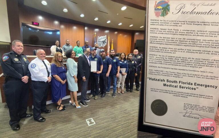 Hatzalah volunteers with Hatzalah South Florida were hand Monday to receive a proclamation of recognition from the City of Lauderhill noting the great work that Hatzalah has performed in their city.