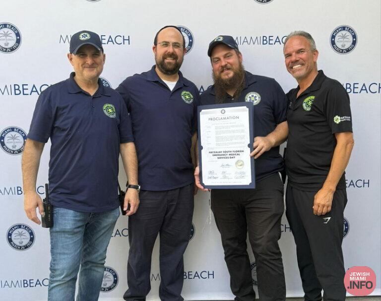 The City of Miami Beach recognized Hatzalah South Florida for their contribution to the community at an event that took place last Thursday. The event took place at City Hall where the organization received a proclamation from the city.
