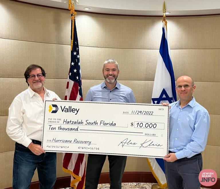 Valley Bank recognized Hatzalah of South Florida’s West Coast involvement during the Hurricane Ian rescue efforts with a $10,000 donation. Valley Bank has been active in supporting local organizations such as Hatzalah South Florida.