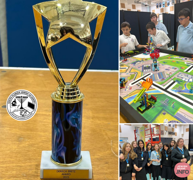 The South Florida Jewish Academy won the best trophy at the South Florida robotics competition today. They were top in three different categories and came out way above every other school in the Derech Eretz.