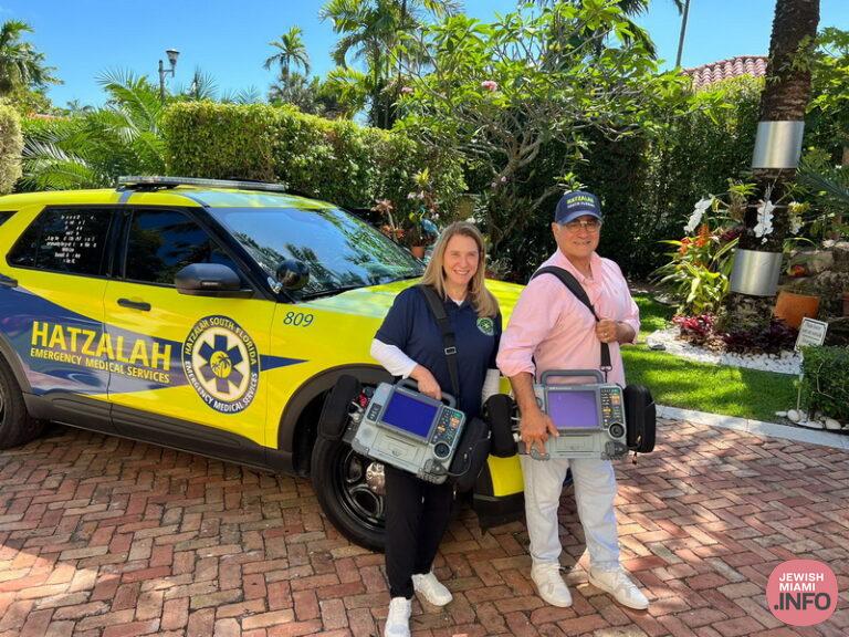 “There’s no greater gift, than the gift of life.” Hatzalah of South Florida released this picture, thanking Sandra and Morris Kaplan for their monumental gift of two cardiac monitors which are invaluable tools used in our life-saving mission.
