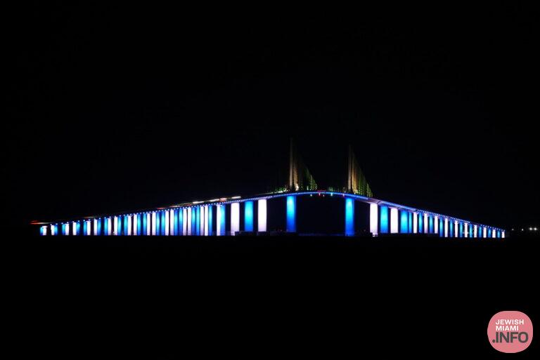 Following the direction of Florida Governor Ron DeSantis, the FDOT illuminated the Sunshine Skyway Bridge last night in white and blue in solidarity with Israel.