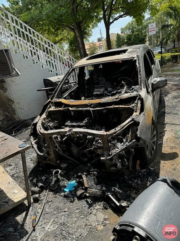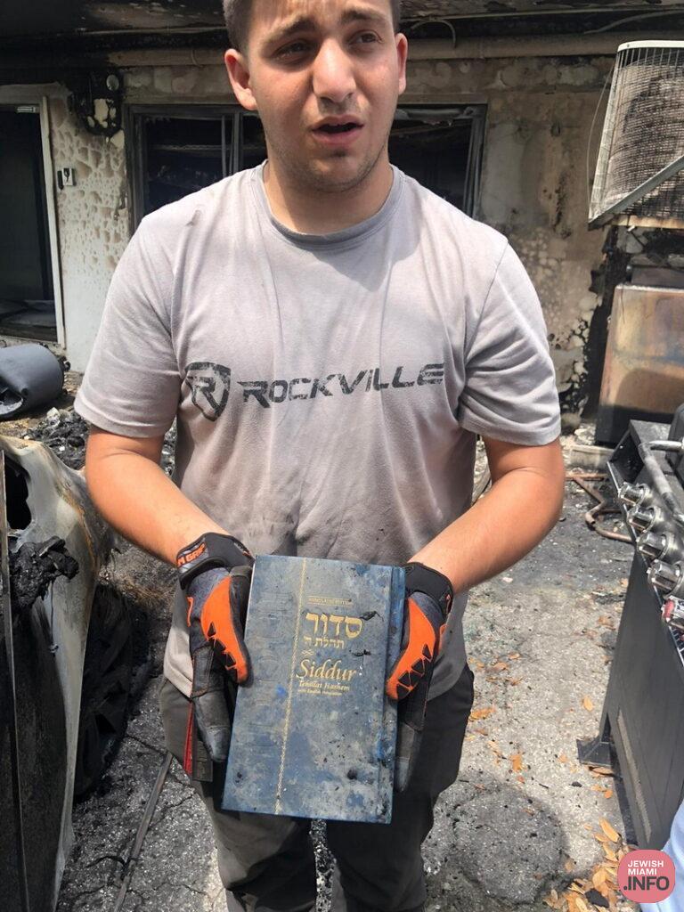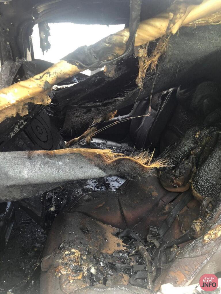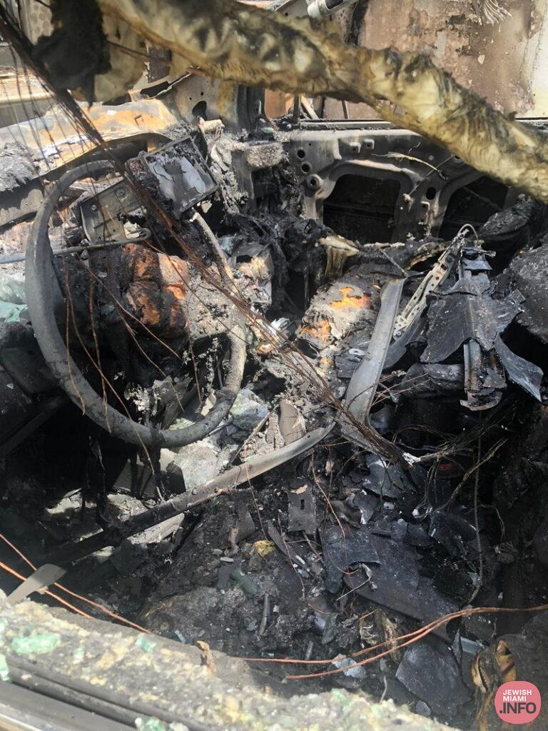 Rabbi Chaim Slavatiki spoke with JewishMiami.info and pointed out a miracle from the incident. The van targeted in the arson was completely burned, but a siddur that had been stashed between two seats in the vehicle was found miraculously undamaged.