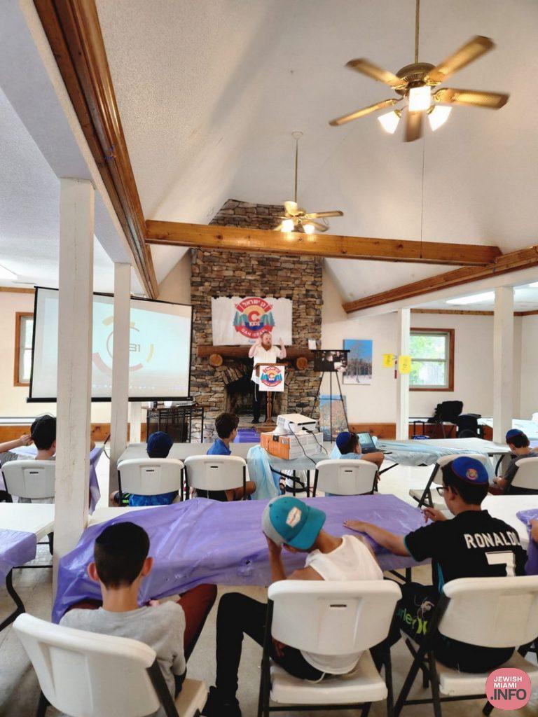 Rabbi Yossi Groner, Head Shliach to North Carolina traveled in for the momentous occasions and was especially impressed by the expansive grounds and the enthusiasm of the campers to participate in the printing of the Tanya. During the ceremony, he addressed the campers and told them that as soon as the Horaa came out he organized the printing of the Tanya in every Jewish community in North Caroline but that Laurel Hill had been waiting since then for Jewish boys to spend time there learning Torah. Rabbi Groner then taught the kids Perek Lamed Beis and emphasized that the whole idea of camp is to connect with other Jewish people in a way of Ahavas Yisroel.