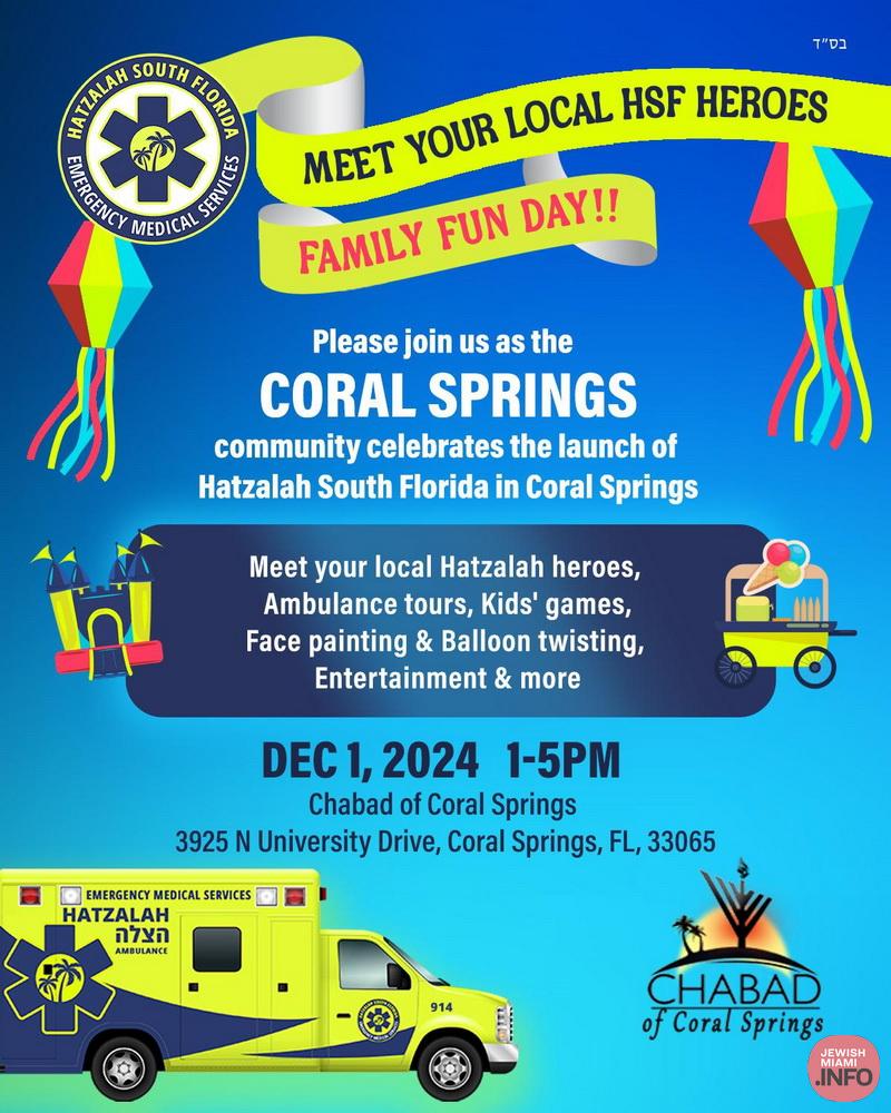 To celebrate this milestone, Hatzalah South Florida is hosting a Family Fun Day on December 1, 2024, at Chabad Coral Springs
