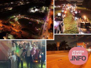 On the 6th night of Chanukah, nearly 60 Menorah cars took to the streets and highways of South Florida to parade the light of Chanukah departing from Chabad of Inverrary making a 33 mile loop around Broward County before returning to Chabad of Inverrary.