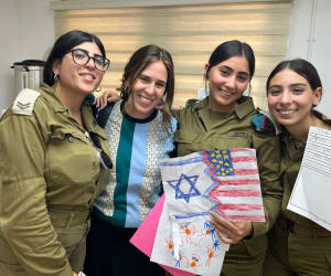“Many of these chayalot are still trying to pick up the pieces and move ahead,” she says. They are still in the thick of things and many didn’t seem to have a sense of what was going on in the rest of the world, yet they maintained their spunk and positive demeanor. Their support of one another was very inspirational. One girl asked if we knew there was a war. She thought we had just come to visit. Of course once we explained that we came precisely because of the war, they were shocked, many tearing up at the idea that we would leave our families and travel across the world to let them know how appreciative we are of them and how much we love and support them.”