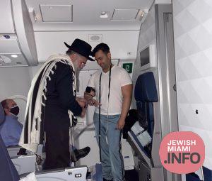 Chabad Shliach Rabbi Yitzchok Minkowicz of Chabad Lubavitch of Southwest Florida was caught on camera doing Mivtza Tefillin with a well known Doctor from Long Island while on a Delta Flight to Israel.