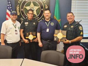 Two Hatzalah of South Florida Boca Raton Supervisors joined a pre-Pesach planning meeting with Captain Moss and Sergeant Ugalde of the Palm Beach Sheriff’s office. During their visit they presented them with a gift of Shmurah Matzah.