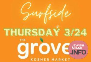 The Grove Surfside, located at 9467 Harding Avenue, includes a full kosher supermarket, butcher on premises, deli, prepared foods and shabbos meals under the Miami Kosher certification.