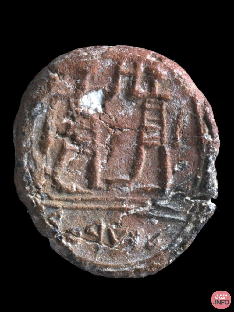 This extraordinary find is a stamped and fired lump of clay, measuring 13 × 15 mm and 2–3 mm thick. The upper part of the sealing depicts two figures facing each other, and the lower part has an inscription in ancient Hebrew script. The sealing was shown to Nir Barkat, the Mayor of Jerusalem, during his visit to the Davidson’s Center, near the Western Wall, last week. The sealing will be temporarily exhibited in the mayor’s office, after the completion of the scientific research.