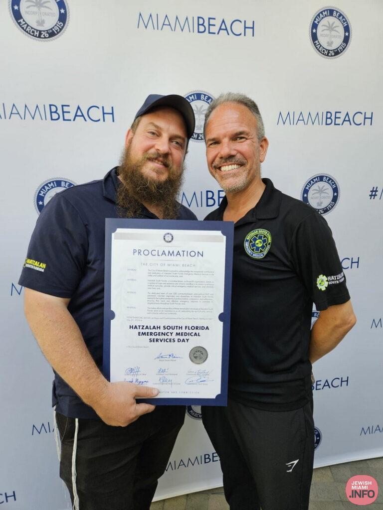 The City of Miami Beach recognized Hatzalah South Florida for their contribution to the community at an event that took place last Thursday. The event took place at City Hall where the organization received a proclamation from the city.