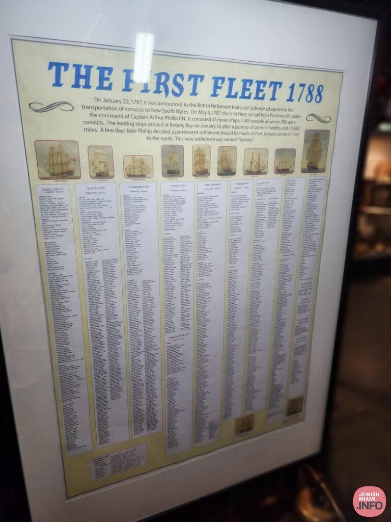 Amongst the many maritime and ship displays, there is a list of passengers that were aboard the 11 ships that made up the First Fleet, which began arriving in late January of 1788.