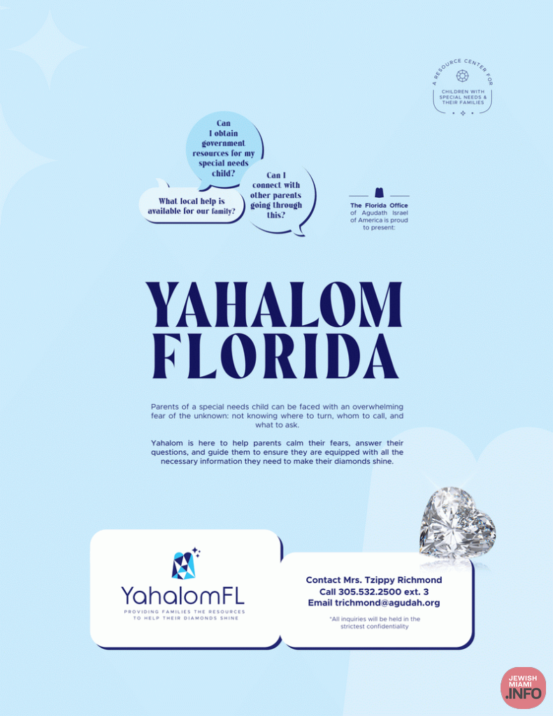 Agudath Israel’s Florida Office is excited to announce the opening of YahalomFL with Mrs. Tzippy Richmond serving as its director. Yahalom, a resource center for families of children with special needs, was first launched in New Jersey two years ago and met with tremendous success, leading to branches opening in New York, Chicago, and now Florida.